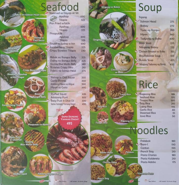 Menu Of Lamesa Grill Mall Of Asia Complex Moa Pasay City